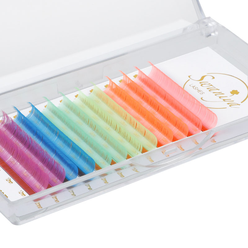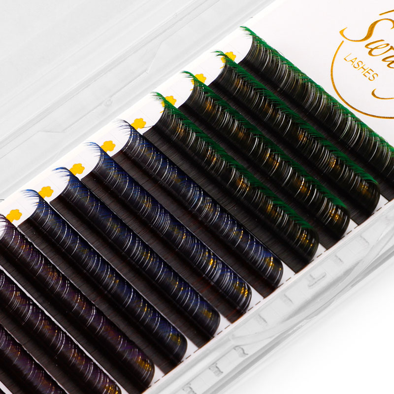 Swaniya Colorful EyeLash Extensions Ունեցեք Ombre Color (Ombre Blue, Ombre Purple, White Pink Ombre եւ այլն), նորմալ գույն (կարմիր, վարդագույն, դեղին, մանուշակագույն եւ այլն), Neon գույնը: